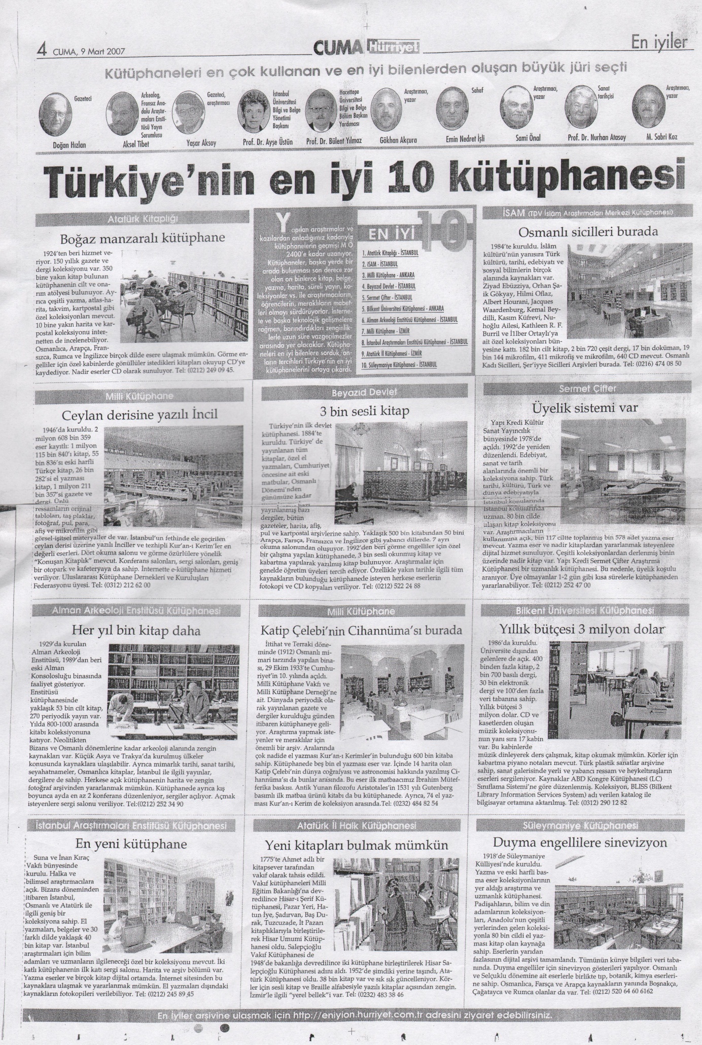 Hürriyet gazetesi tarafından 9 Mart 2007 tarihinde Türkiye’nin en iyi on kütüphanesi sıralamasında yedinciliğe uygun görülmüştür.