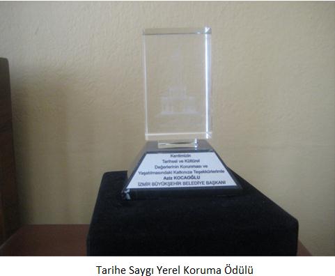 İzmir Büyükşehir Belediyesi tarafından 2009 yılında Tarihe Saygı/Yerel Koruma ödülüne uygun bulunmuştur.